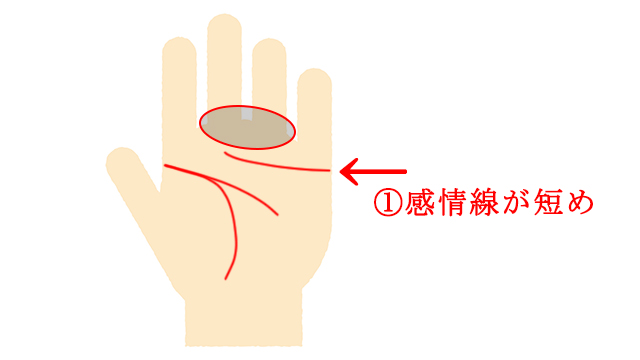 短いの基準は、感情線の終点が中指の中央のラインで止まっているぐらいです。
