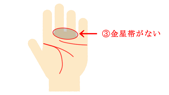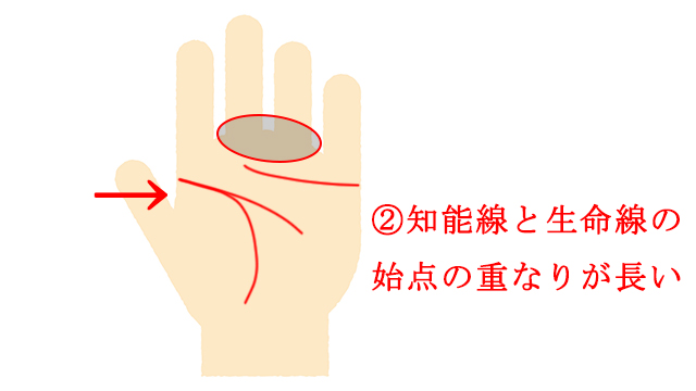 中央の知能線と、その下の生命線の始点の接触具合をみます。